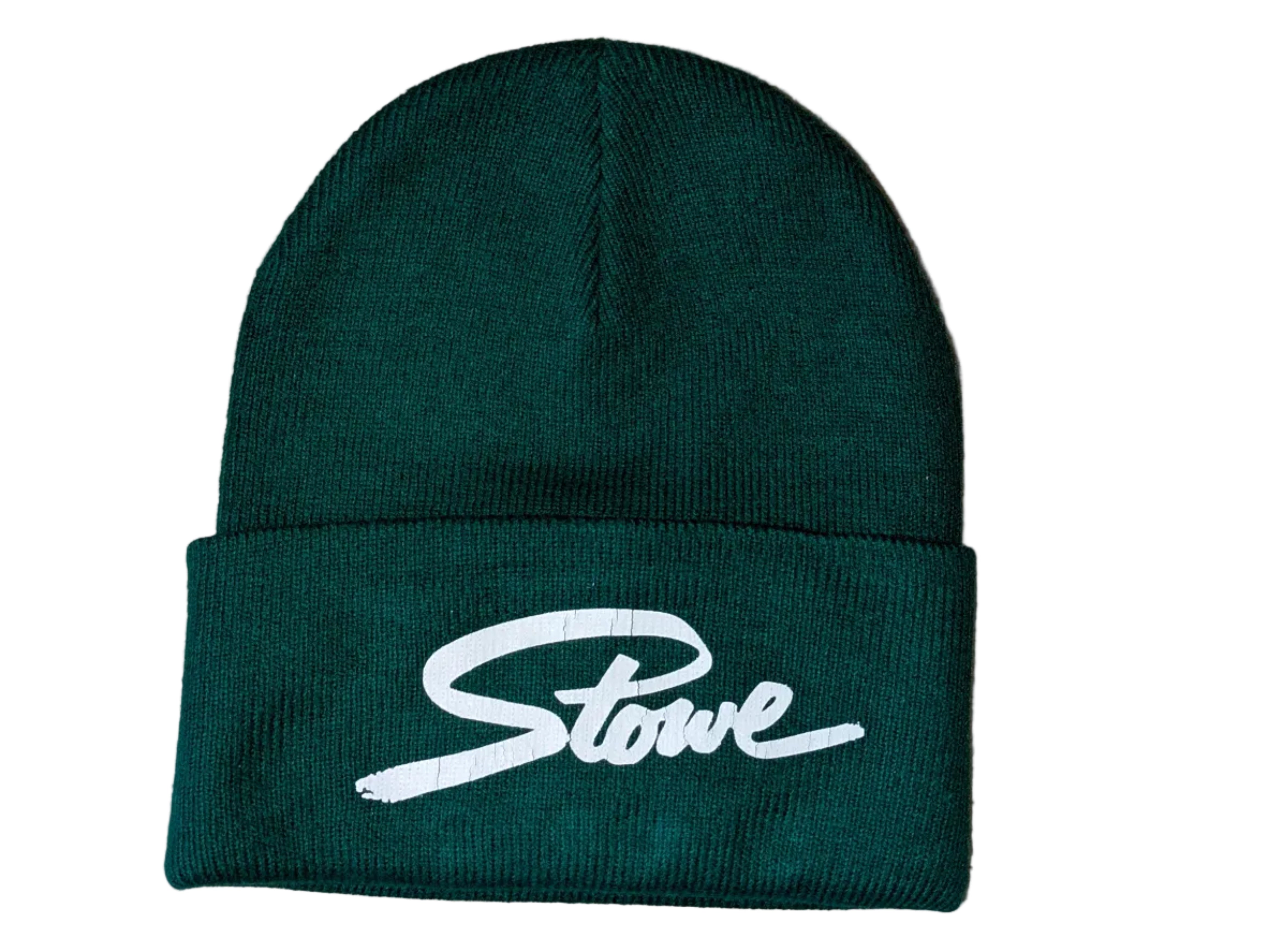 Keep your head warm and toasty this winter with a Stowe beanie printed in-house by our family.